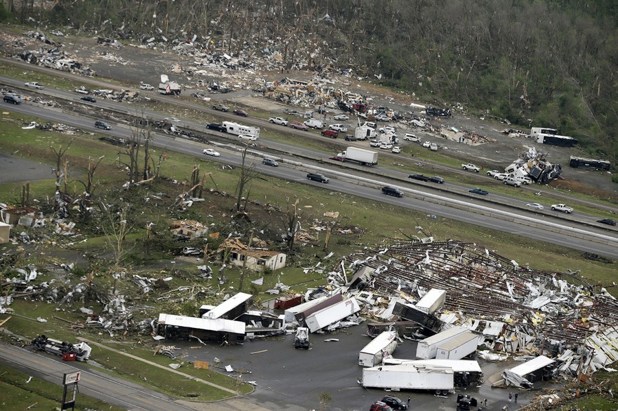 Read moreAerial view after a tornado hit Vilonia, Arkansas, on April 28, 2014. Over the past couple of days, a ferocious storm system has spawned multiple tornadoes across the Southeastern states, killing more than 20, with more threatening weather forecast for today. #
