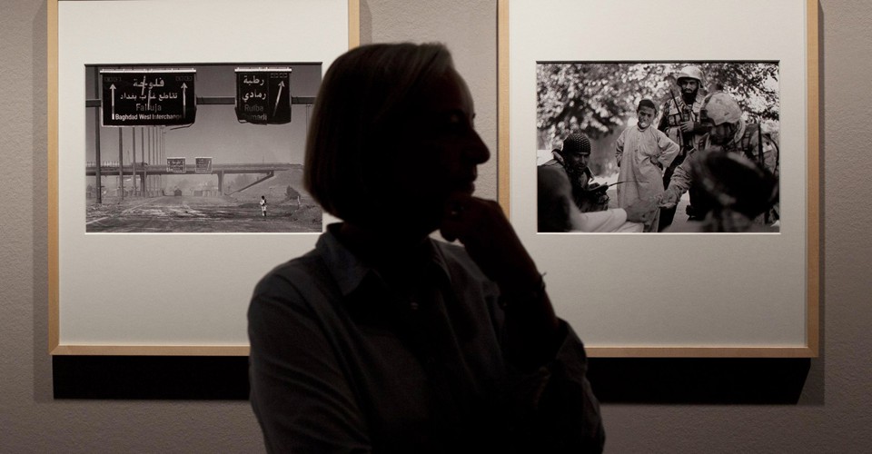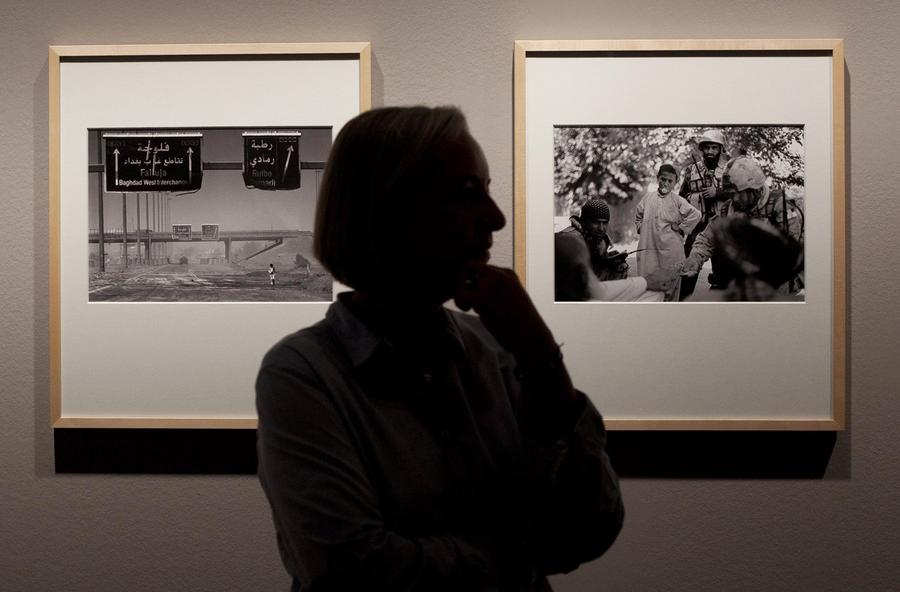 Read moreAssociated Press photographer Anja Niedringhaus stands next to photographs from Iraq, left, and Afghanistan, right, during a press preview of her exhibition "Anja Niedringhaus At War" at the Gallery C/O in Berlin on September 9, 2011. #