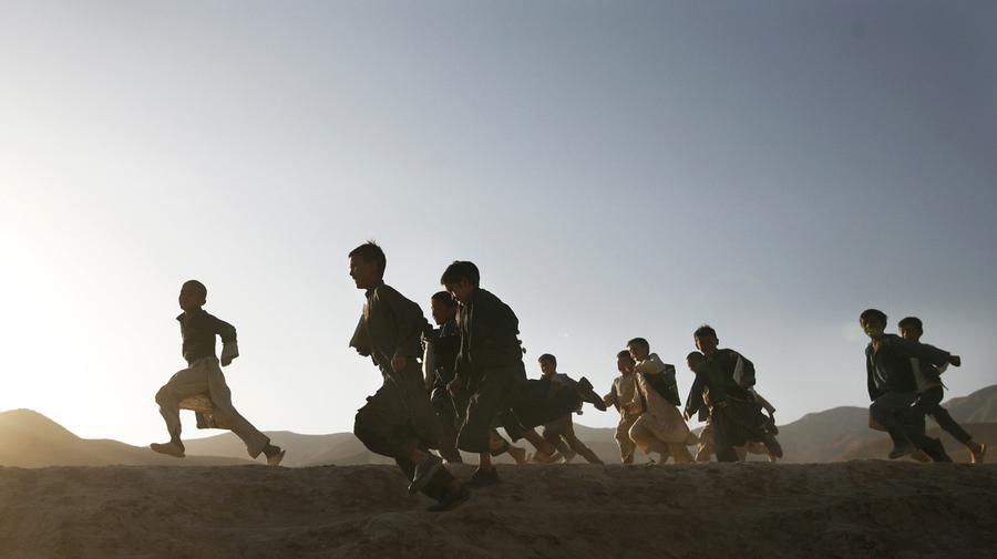 Read moreAfghan schoolchildren follow ISAF soldiers with the German Federal Armed Forces (Bundeswehr) patrolling the mountain villages on the outskirts of Feyzabad on September 27, 2008. #
