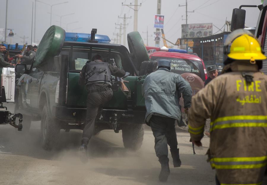 Read moreAfghan policemen run to jump on their car as Taliban militants attacked the main Afghan election commission's headquarters on the outskirts of Kabul, firing on the compound with rocket-propelled grenades and heavy machine guns from a house outside its perimeter wall on March 29, 2014. Dozens of employees and other people who had been inside the Independent Election Commission compound took cover in the basement, and no casualties were reported. But two warehouses were hit and set on fire, witnesses said. #