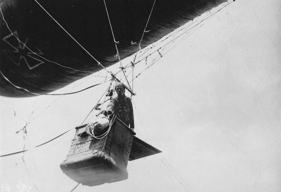 Over the course of the war, the role of the military aviator progressed from one of mere observation to a deadly offensive role. Early on, pilots would would fly off armed only with pistols (or completely unarmed)—by 1918, fighter planes and massive bombers were in use, armed with multiple machine guns and devastating explosive payloads. Older technologies, like tethered balloons and kites were used on the front lines to gain an upper hand. As aircraft became more of a threat, anti-aircraft weapons and tactics were developed, and pilots had to devise new ways to avoid being shot down from the land and the sky. Aerial photography developed into an indispensable tool to guide artillery attacks and assess damage afterward. The pilots of these new aircraft took tremendous risks—vulnerable to enemy fire, at the mercy of the weather, flying new, often experimental aircraft. Crashes were frequent, and many paid with their lives. I've gathered photographs of the Great War from dozens of collections, some digitized for the first time, to try to tell the story of the conflict, those caught up in it, and how much it affected the world. This entry is part 5 of a 10-part series on World War I.