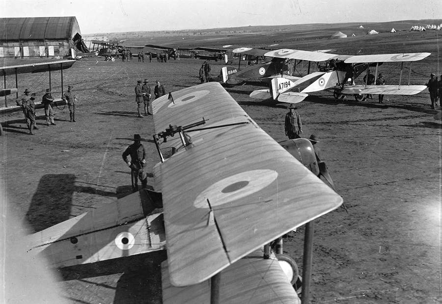 Read moreCaptain Ross-Smith (left) and Observer in front of a Modern Bristol Fighter, 1st Squadron A.F.C. Palestine, February 1918. This image was taken using the Paget process, an early experiment in color photography. #