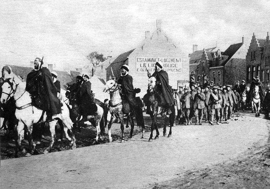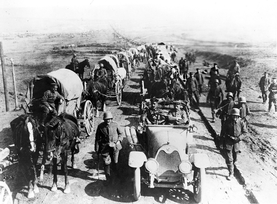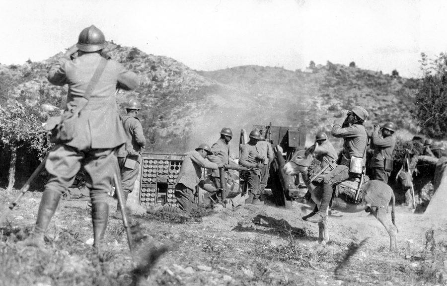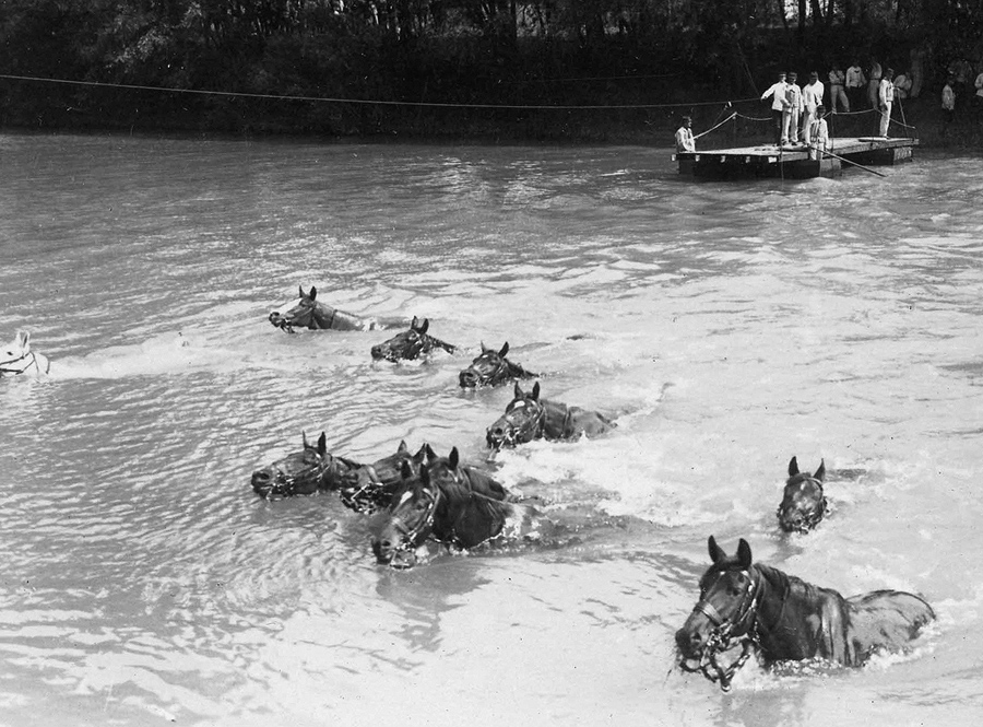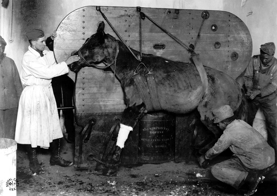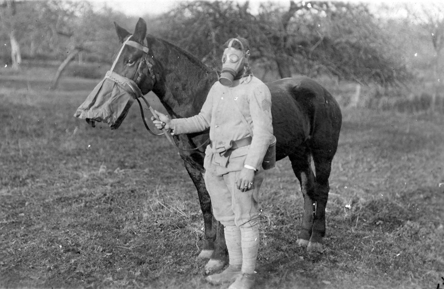 When the war began, Europe's armies had an understanding of warfare that put the use of cavalry in high regard. Soon, however, the deadly terrain that evolved around trench warfare rendered cavalry attacks nearly useless on the Western Front. But the need for constant resupply, movement of new heavy weaponry, and the transport of troops demanded horse power on a massive scale -- automobiles, tractors, and trucks were relatively new inventions and somewhat rare. British and French forces imported horses from colonies and allies around the world, a near-constant flow of hundreds of thousands of animals across the oceans, headed for war. One estimate places the number of horses killed during the four years of warfare at nearly 8 million. Other animals proved their usefulness as well: Dogs became messengers, sentries, rescuers, and small beasts of burden. Pigeons acted as messenger carriers, and even (experimentally) as aerial reconnaissance platforms. Mules and camels were drafted into use in various war theatres, and many soldiers brought along mascots to help boost morale. Only a couple of decades later, at the onset of World War II, most military tasks assigned to animals were done by machines, and warfare would never again rely so heavily on animal power. I've gathered photographs of the Great War from dozens of collections, some digitized for the first time, to try to tell the story of the conflict, those caught up in it, and how much it affected the world. This entry is part 4 of a 10-part series on World War I.