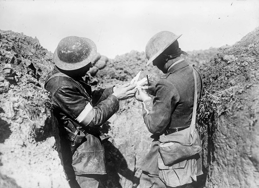 Read moreA message is attached to a carrier pigeon by British troops on the Western Front, 1917. One of France's homing pigeons, named Cher Ami, was awarded the French "Croix de Guerre with Palm" for heroic service delivering 12 important messages during the Battle of Verdun. #
