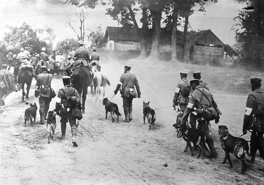 Read moreGas attack on the West Front, near St. Quentin 1918—a German messenger dog loosed by his handler. Dogs were used throughout the war as sentries, scouts, rescuers, messengers, and more. #