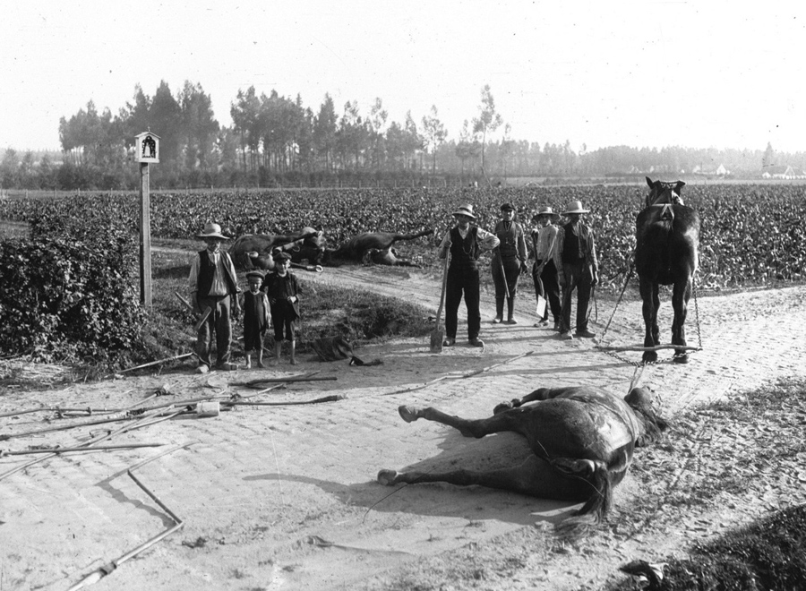 Read moreOn the Western Front, a dead German artilleryman and several draft horses, ca. 1918. Exact figures are hard to come by, but an estimated 8 million horses died during the four years of war. #