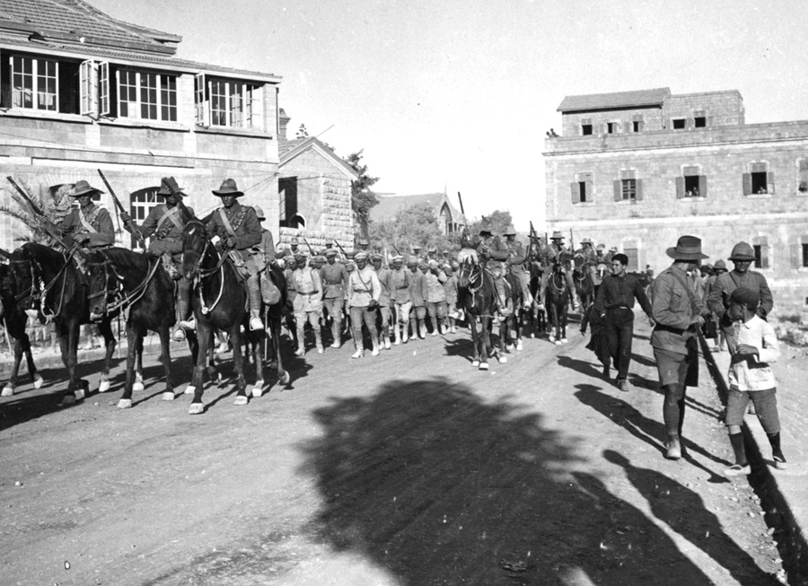 Read moreThe reading of a proclamation at the Tower of David in Jerusalem, December 11, 1917 -- two days after the Ottoman Army had surrendered and handed the city over to Allied troops. See this same location today on google maps street view. #