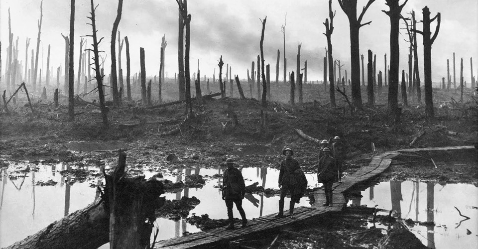 Read moreSoldiers of an Australian 4th Division field artillery brigade walk on a duckboard track laid across a muddy, shattered battlefield in Chateau Wood, near Hooge, Belgium, on October 29, 1917. This was during the Battle of Passchendaele, fought by British forces and their allies against Germany for control of territory near Ypres, Belgium. #
