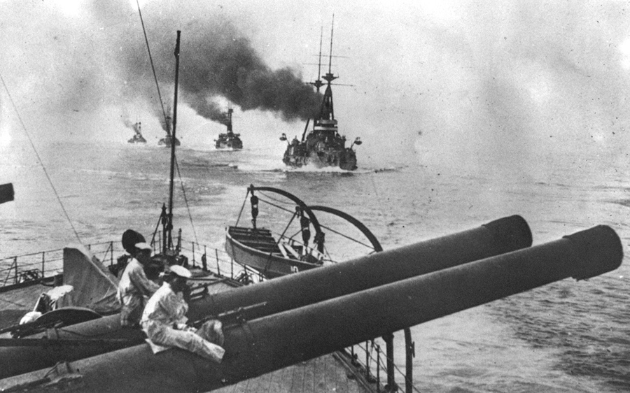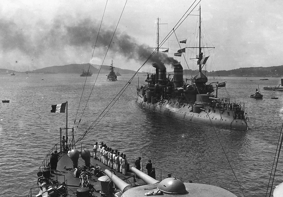 Read moreThe Japanese fleet off the coast of China in 1914. Japan sided with the United Kingdom and its allies, attacking German interests in the Pacific, including island colonies and leased territories on the Chinese mainland. #