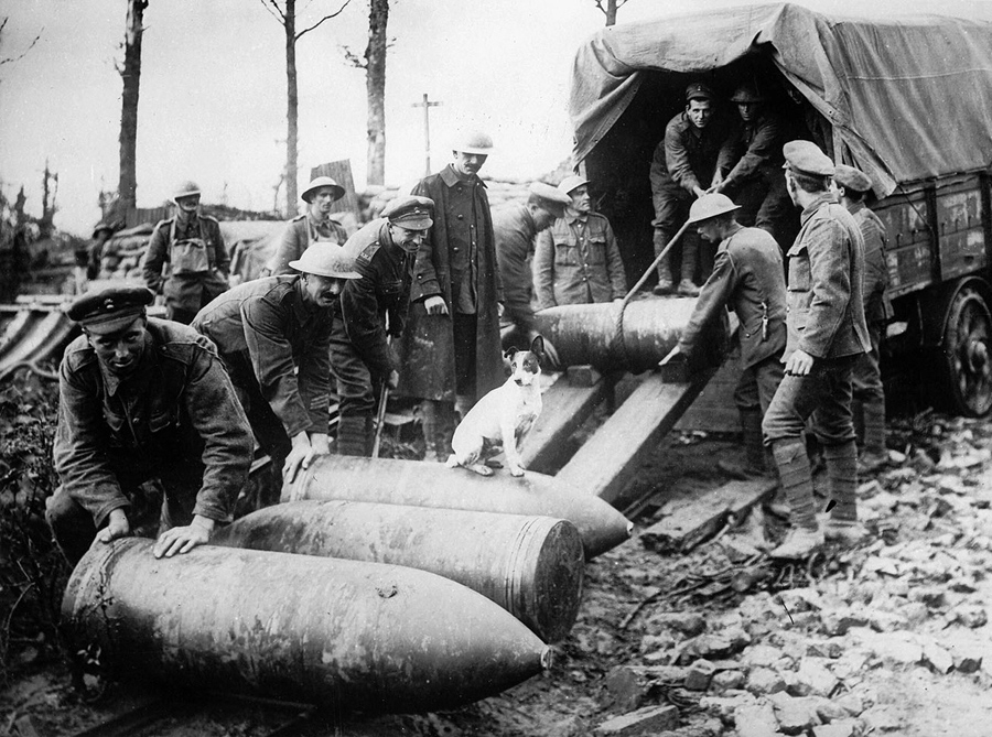 Read more"Pill box demolishers" being unloaded on the Western Front. These enormous shells weighed 1,400 lbs. Their explosions made craters over 15 ft. deep and 15 yards across. #