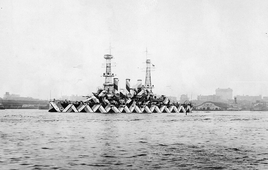 Read moreThe USS Nebraska, a United States Navy battleship, with dazzle camouflage painted on the hull, in Norfolk, Virginia, on April 20, 1918. Dazzle camouflage, widely used during the war years, was designed to make it difficult for an enemy to estimate the range, heading, or speed of a ship, and make it a harder target. #