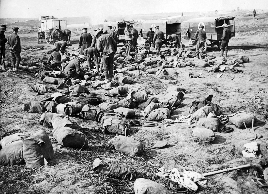 Read moreRoyal Army Medical Corps men search the packs of the British dead for letters and effects to be sent to relatives after the Battle of Guillemont, Somme, France, in September of 1916. #