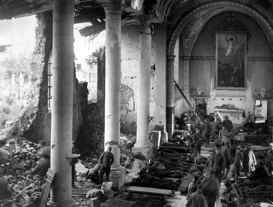 Read moreA shattered church in the ruins of Neuvilly becomes a temporary shelter for American wounded being treated by the 110th Sanitary Train, 4th Ambulance Corps. France, on September 20, 1918. #
