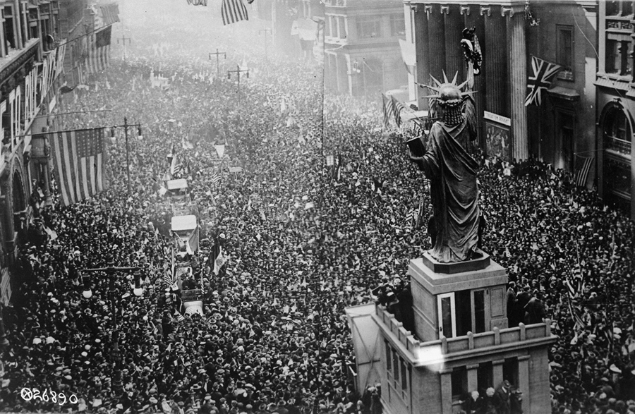 Read moreThe announcing of the armistice on November 11, 1918, was the occasion for a monster celebration in Philadelphia, Pennsylvania. Thousands massed on all sides of the replica of the Statue of Liberty on Broad Street, and cheered unceasingly. #