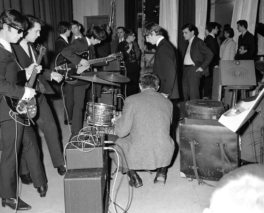 Read moreThe Beatles during television recordings in Hillegom, Netherlands, on June 5, 1964. Drummer Ringo Starr was briefly hospitalized after a tonsillectomy, and Jimmie Nicol sat in on drums for several concerts. #