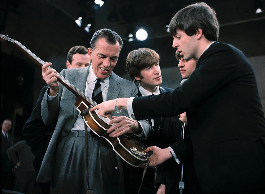 Read morePaul McCartney, right, shows his guitar to Ed Sullivan before the Beatles' live television appearance in New York on February 9, 1964. Behind Sullivan, from left, Beatles manager Brian Epstein, John Lennon, and Ringo Starr. #
