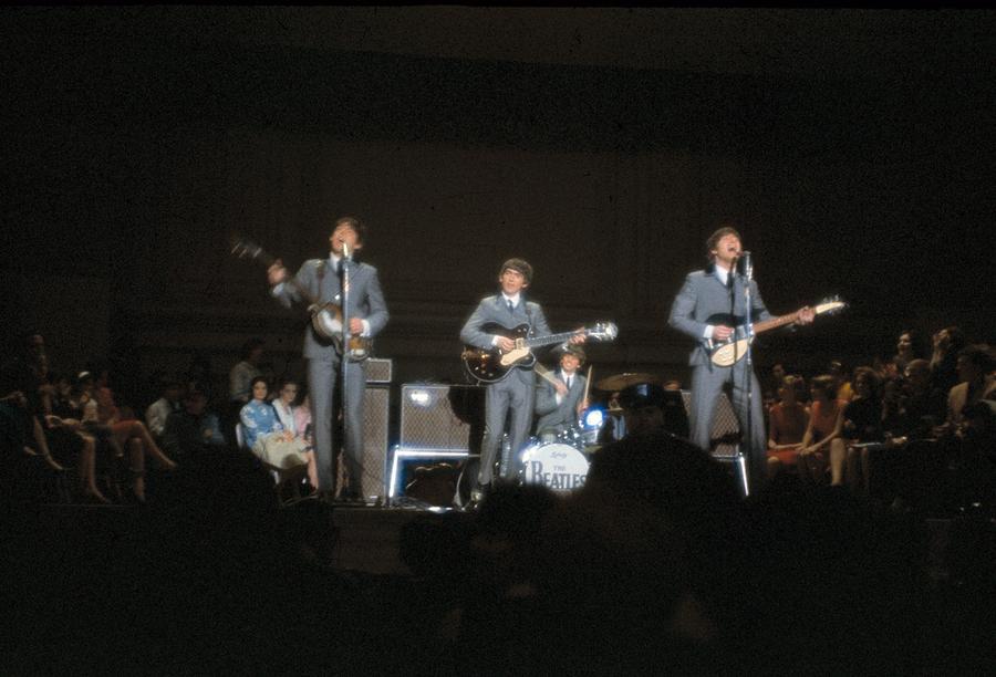 At the start of 1964, the Beatles were at the top of the charts in the UK, but had just started to attract audiences overseas with songs from their first two albums Please Please Me and With the Beatles. Radio airplay and a broad marketing campaign in the U.S. quickly drove huge record sales and enormous enthusiasm among new fans -- the band and their sound were something new and exciting, and they were coming to America. John Lennon, Ringo Starr, Paul McCartney and George Harrison set off on a series of tours in 1964, starting in Europe, later visiting the United States, Hong Kong, Australia and New Zealand. Beatles fans were so excited and determined to see the band that police sometimes resorted to using fire hoses to hold them back. Their first televised concert in the U.S. was on the Ed Sullivan Show, on February 9, 1964. 73 million viewers watched that performance -- 34 percent of the American population. Below are images of the Beatles' big year, in roughly chronological order, as the world discovered Beatlemania. This is the third of five entries focusing on events of the year 1964 this week (and next Monday). Later entries will feature images from Alaska's Good Friday earthquake and the New York World's Fair.