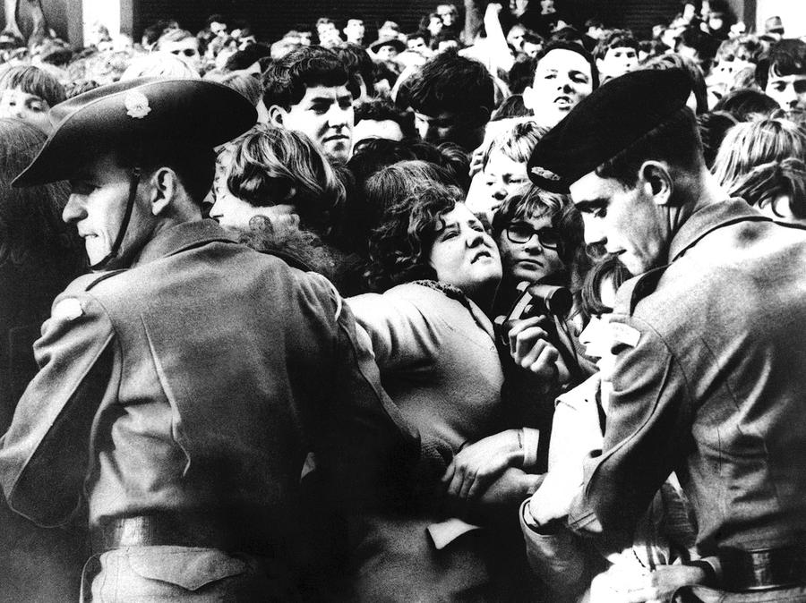 Read moreTwo Australian soldiers link arms to control a section of the crowd outside the Southern Cross Hotel in Melbourne on the arrival of the Beatles, on June 14, 1964. Some 300 policemen and 100 soldiers made an attempt to contain 10,000 screaming fans and to keep open a passageway for the singing group's cars. Like most of the barriers, this one was pushed aside at the height of the crush. The Beatles were eventually taken into the hotel through a back entrance. #