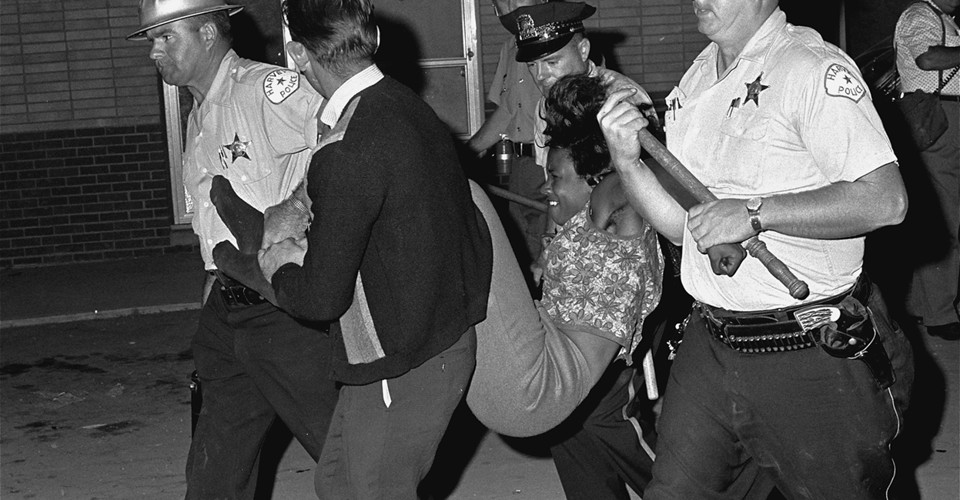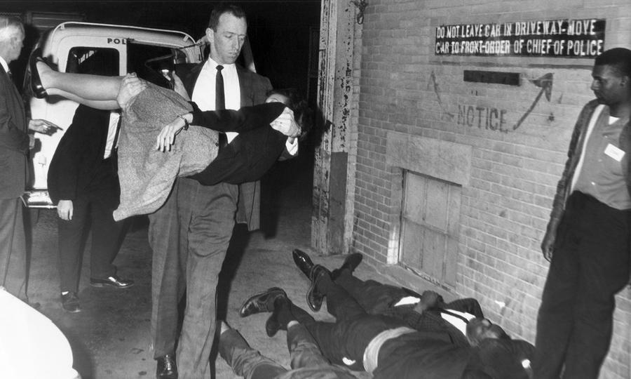 Read moreA police officer carrying a young girl walks past three civil rights demonstrators on the ground next to the Tulsa, Oklahoma, police station on April 2, 1964. The demonstrators were part of 54 arrested at a Tulsa restaurant. Members of the group, backed by the Congress of Racial Equality, went limp when arrested and forced officers to carry them from the restaurant and the paddy wagon. #