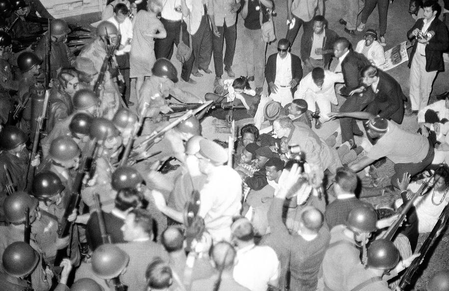 Read moreNational Guard troops with upthrust bayonets surround integrationists kneeling in prayer as approximately 100 made a peaceful attempt to challenge the no-demonstration edict of the military commander in Cambridge, Maryland on May 13, 1964. #