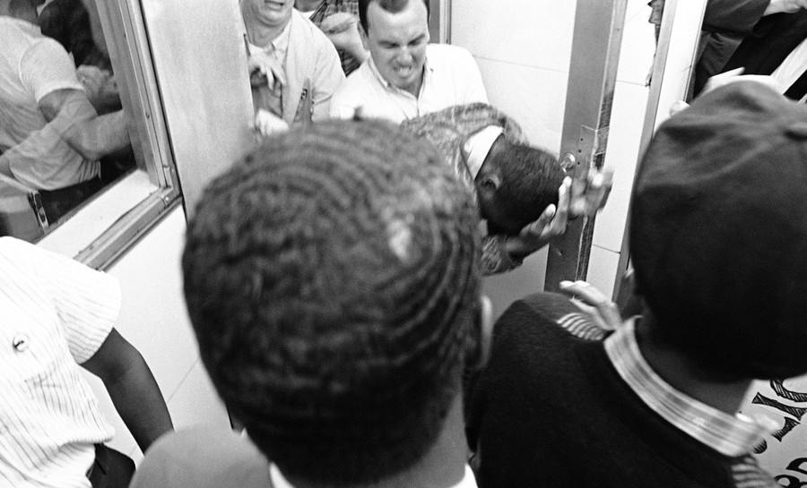 Read more(2 of 4) A group of white segregationists attack a group of blacks as they began to swim at the St. Augustine Beach, Florida, on June 25, 1964. Police moved in and broke up the fighting. #