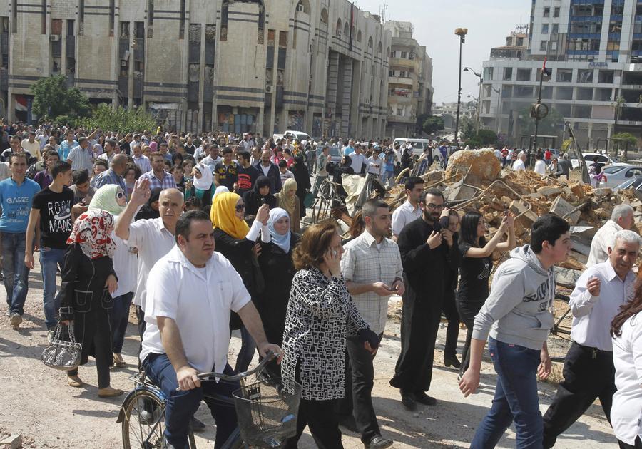 Read moreHoms city in 2014. Syrians walk amid debris as they return to the Juret al-Shayah district of the central city of Homs on May 10, 2014, a day after the last Syrian rebels left the city's neighborhood. Rebel forces in the Old City were under government siege for nearly two years before the deal to evacuate, and regime troops shelled the area almost daily throughout. #