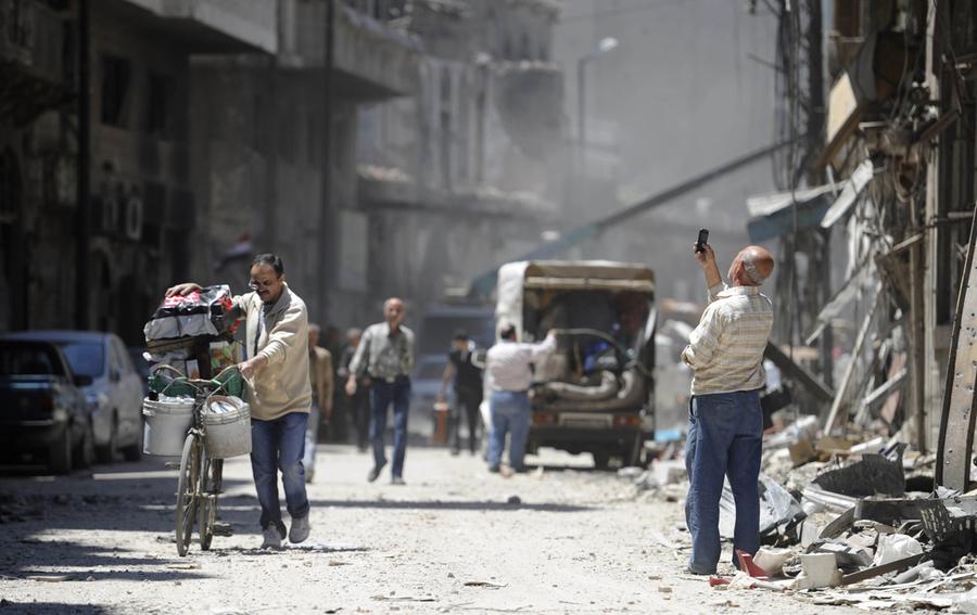 Read moreResidents arrive on foot to inspect their homes, after the cessation of fighting between rebels and forces loyal to Syria's President Bashar al-Assad, in Homs city, on May 10, 2014. #