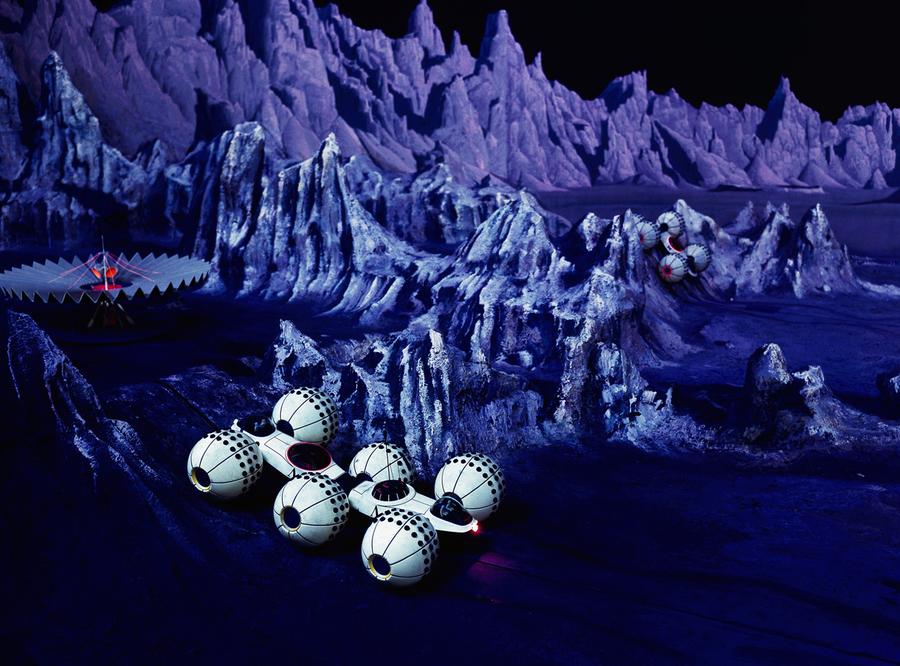 Read moreFrom the official guide book entry on Futurama: "A trip to the moon starts the ride taking the visitor past a scale model whose craters and canyons are dotted with manned 'lunar-crawlers' and commuter space ships." #