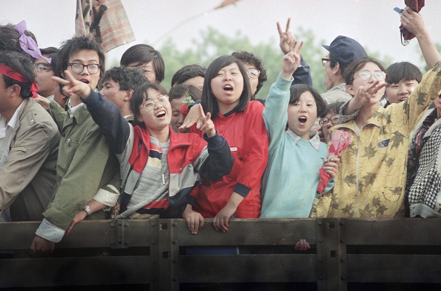 Read morePro-democracy demonstrators raise their fists and flash the victory sign in Beijing while stopping a military truck filled with soldiers on its way to Tiananmen Square on the day when then Prime Minister Li Peng declared Martial Law, May 20, 1989. #