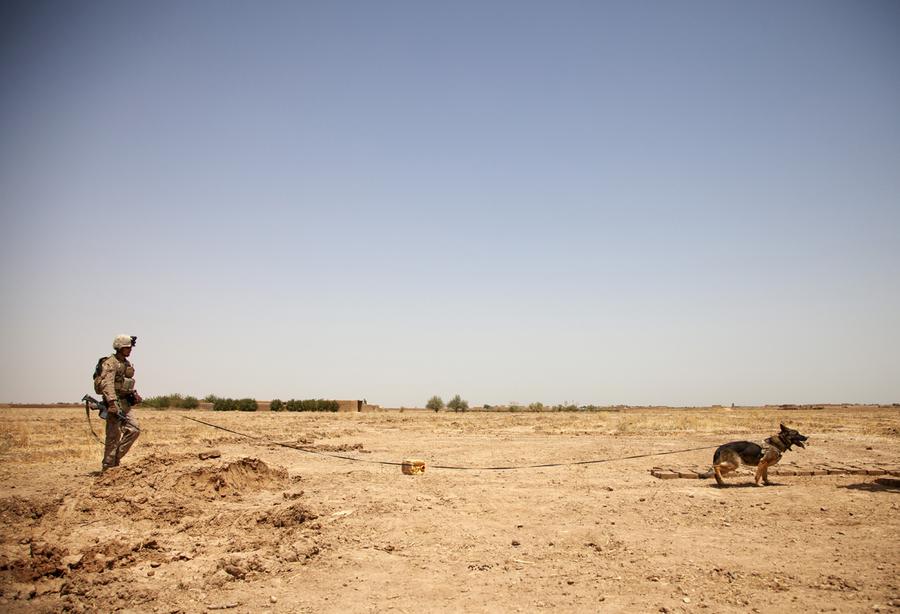 Read moreU.S. Marine Corps Lance Cpl. Joseph Nunez and Viky, an improvised explosive device detection dog, both attached to Fox Company, 2nd Battalion, 2nd Marine Regiment, search the perimeter of a compound for hidden threats during Operation Grizzly in Helmand province on July 18, 2013. #