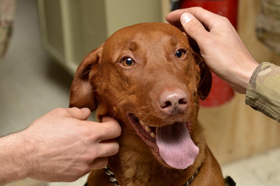 Read moreU.S. Marine Sgt. Maj. Lisa K. Nilsson, sergeant major, 2nd Marine Aircraft Wing, pets a military working dog at Patrol Base Boldak, Helmand Province, on March 6, 2013. #