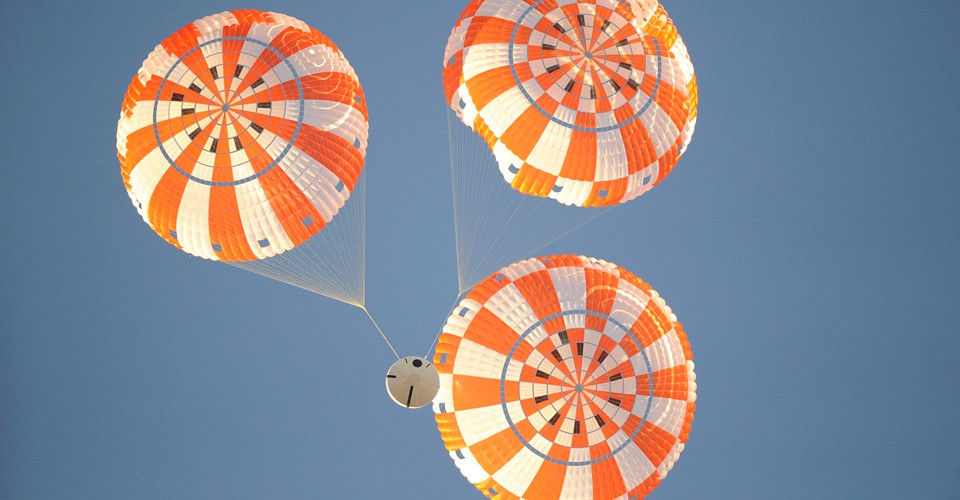 Read moreA C-17 plane dropped a test version of Orion from an altitude of 25,000 feet above the U.S. Army Yuma Proving Ground in southwestern Arizona, on July 18, 2012. The main objective of the latest drop test was to determine how the entire system would respond if one of the three main parachutes inflated too quickly. #