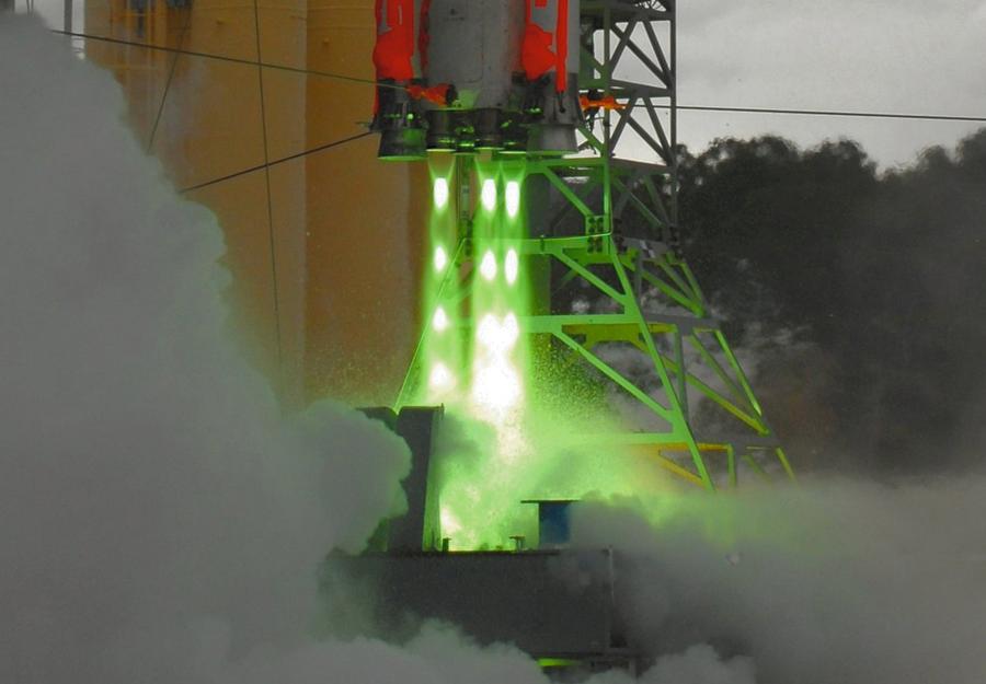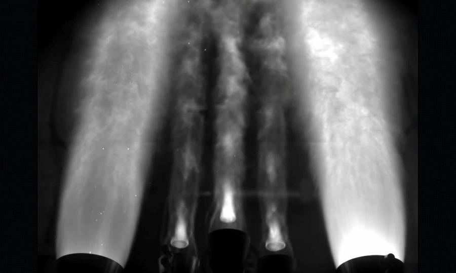 Read moreA 5-percent scale model of the Space Launch System (SLS) is ignited for five seconds to measure the effects acoustic noise and pressure have on the vehicle at liftoff. The green flame is a result of the ignition fluid that is burned along with the propellant during this short-duration test. #