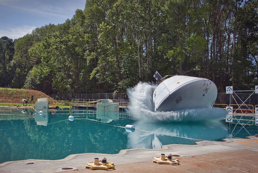 Read moreTesting NASA's base model for the agency's future Orion Multi-Purpose Crew Vehicle. The module took flight from a large swing, nearing 50 mph (80.5 kph), before splashing down in a pool at NASA Langley's Landing and Impact Research Facility, on August 2, 2011. #