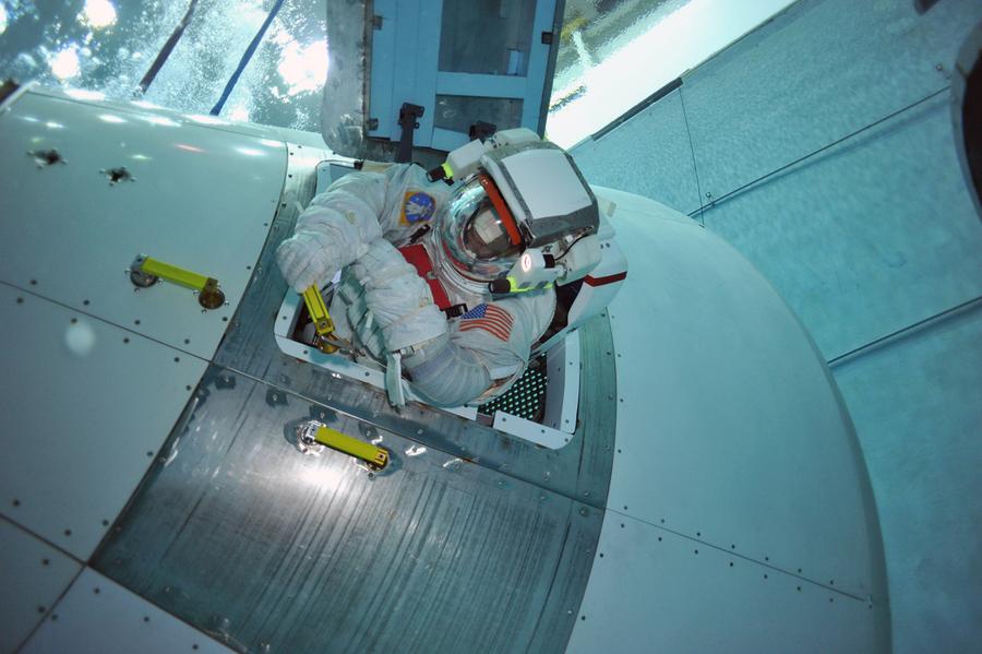 Read moreAn astronaut prepares to install a handrail on a mockup of the Orion crew exploration vehicle in NASA's Neutral Buoyancy Laboratory (NBL) near the Johnson Space Center, on September 10, 2010. A two-person crew installed and uninstalled handrails to evaluate existing hardware for use in contingency spacewalk scenarios on future exploration missions. #