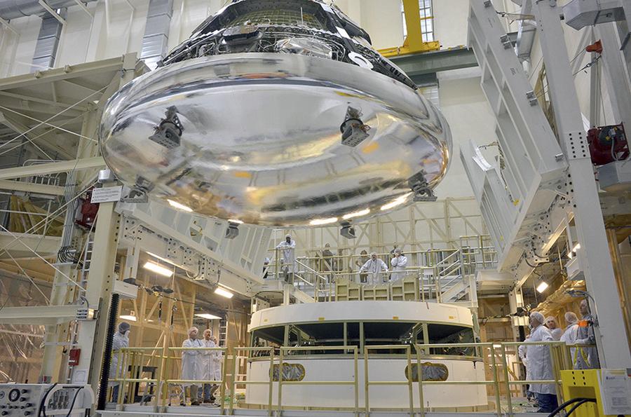 Read moreThe Orion crew module for Exploration Flight Test-1, in the Final Assembly and System Testing (FAST) Cell at NASA's Kennedy Space Center, Florida in this photo released by NASA on June 10, 2014. #