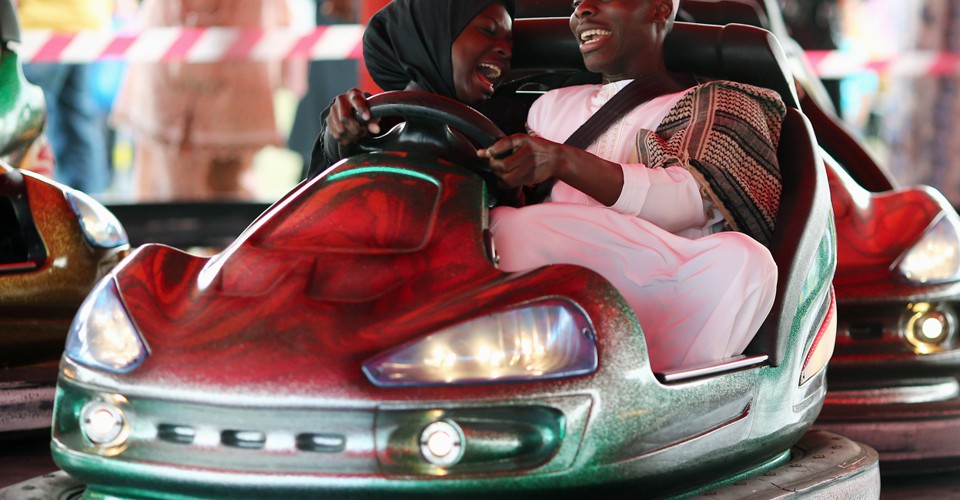 Read morePeople ride in Bumper cars during an Eid celebration in Burgess Park in London, England, on July 28, 2014. The Muslim holiday Eid marks the end of 30 days of dawn-to-sunset fasting during the holy month of Ramadan. #