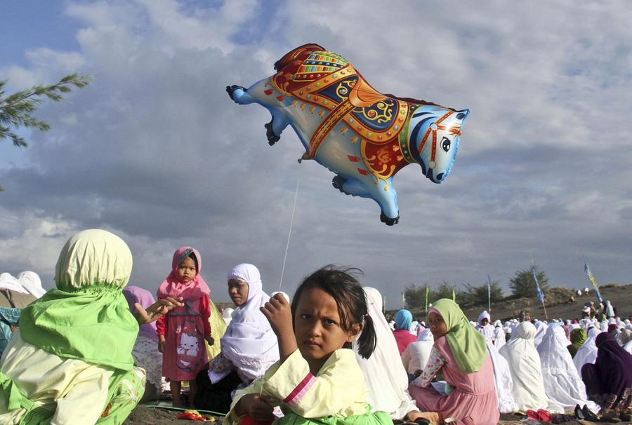 Read moreAn Indonesian girl holds a balloon during Eid al-Fitr prayer that marks the end of the holy fasting month of Ramadan on Parang Kusumo Beach in Yogyakarta, Indonesia, Monday, July 28, 2014. #