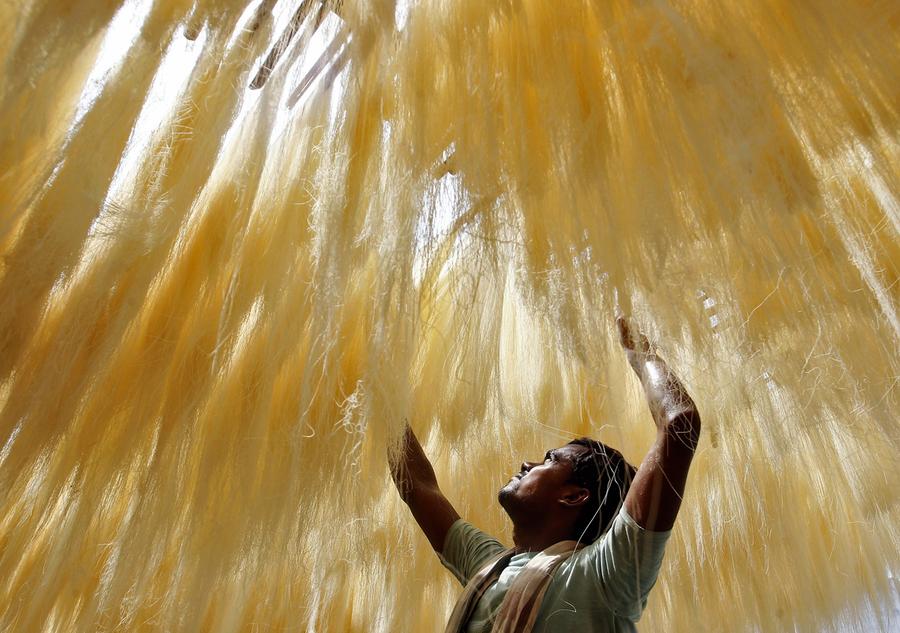 Read moreA man arranges strands of vermicelli, which are kept for drying at a factory in the northern Indian city of Allahabad on July 1, 2014. Vermicelli is a specialty that is eaten during the Muslim holy month of Ramadan. #