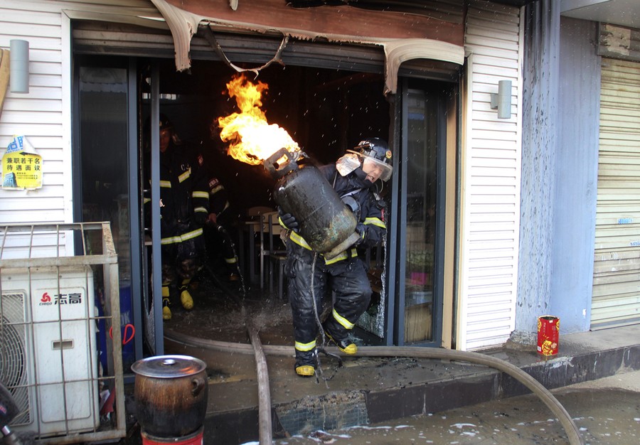 Read moreFirefighter Huangpu Jiangwu carries a burning gas cylinder from the site of a fire incident in Wuhan, Hubei province, on January 3, 2014. Huangpu's identity was revealed by local media after his pictures were taken and gained popularity with members of Weibo, a Chinese microblogging site also known as "Twitter of China." #