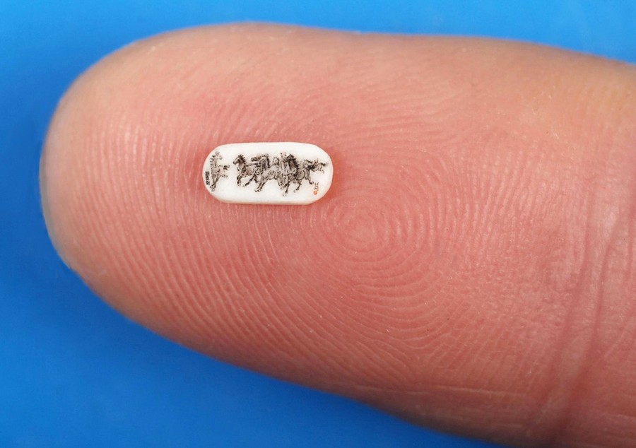 Read moreA miniature sculpture made by Chinese artist Li Qici, which imitates Chinese painter Xu Beihong's painting of eight running horses, is displayed on his finger, to celebrate the upcoming Chinese New Year in Yuyao, Zhejiang province, on January 5, 2014. Li, 68, spent several months to craft the miniature sculpture on a 6-millimeter-long by 3-millimeter-wide ivory plate to the likeness of Xu's painting. #