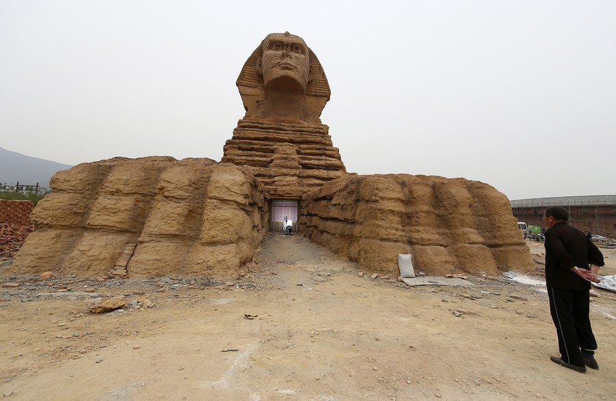 Read moreA man looks at a full-scale replica of the Sphinx, part of an unfinished theme park that will also accommodate the production of movies, television shows and animation, on the outskirts of Shijiazhuang, Hebei province, on May 10, 2014. #