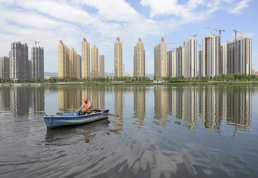 Read moreA man rows a boat on a river in front of new properties in Taiyuan, Shanxi province, on July 24, 2014. China's economy probably will grow at its slowest pace in 24 years this year, expanding by 7.4 percent, as government stimulus measures fail to fully offset the drag from a sluggish housing market, a Reuters poll showed. #