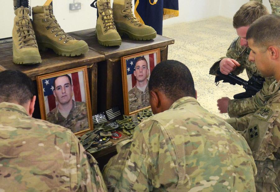 Read moreSoldiers pay last respects to two fallen heroes from Dagger Company, 2nd Battalion, 12th Infantry Regiment, 4th Infantry Brigade Combat Team, 4th Infantry Division during a memorial ceremony June 13 at the chapel on Forward Operating Base Apache, Zabul province, Afghanistan. Remembered were Cpl. Justin Clouse of Spokane, Washington, and Pfc. Aaron Toppen of Hazel Crest, Illinois, both of whom died in combat June 10, 2014. #