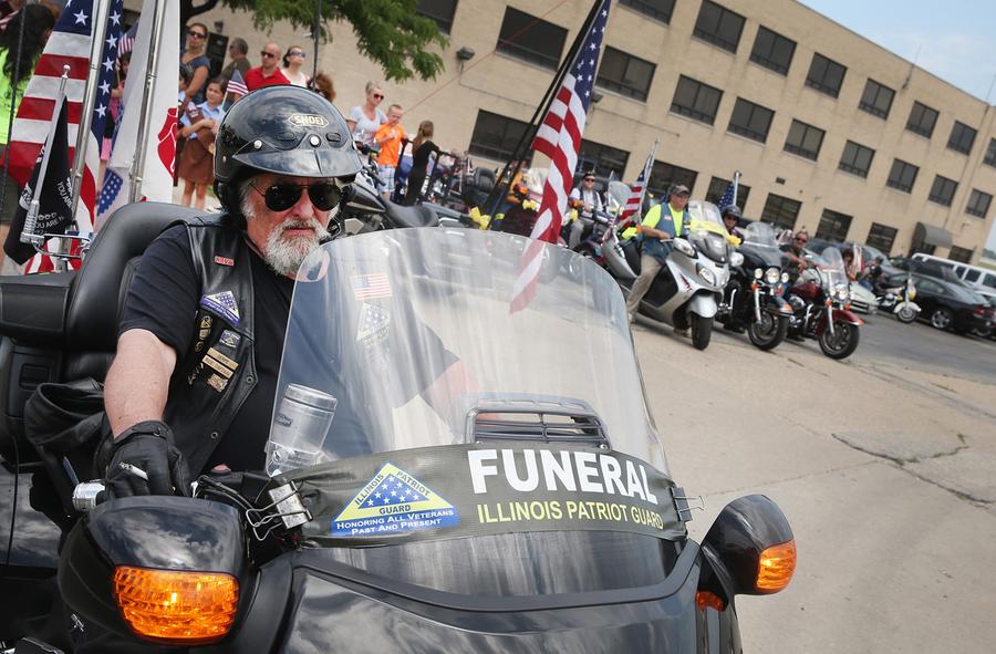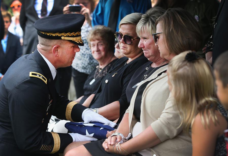 Read morePamela Toppen (right) gets a hug from her mother Betty Winter after the remains of her son Pfc. Aaron Toppen were loaded into a hearse on June 21, 2014 in Chicago, Illinois. #