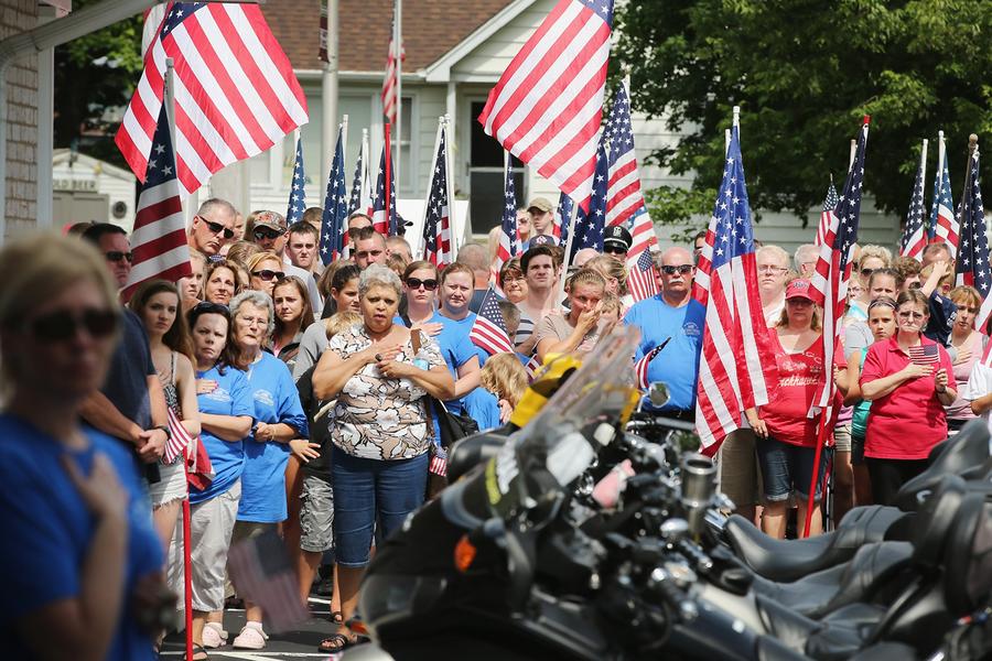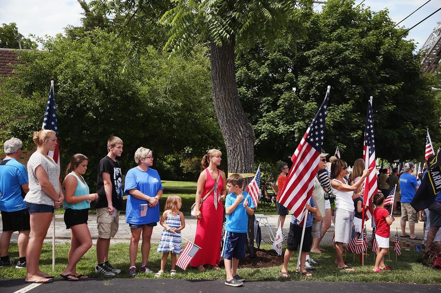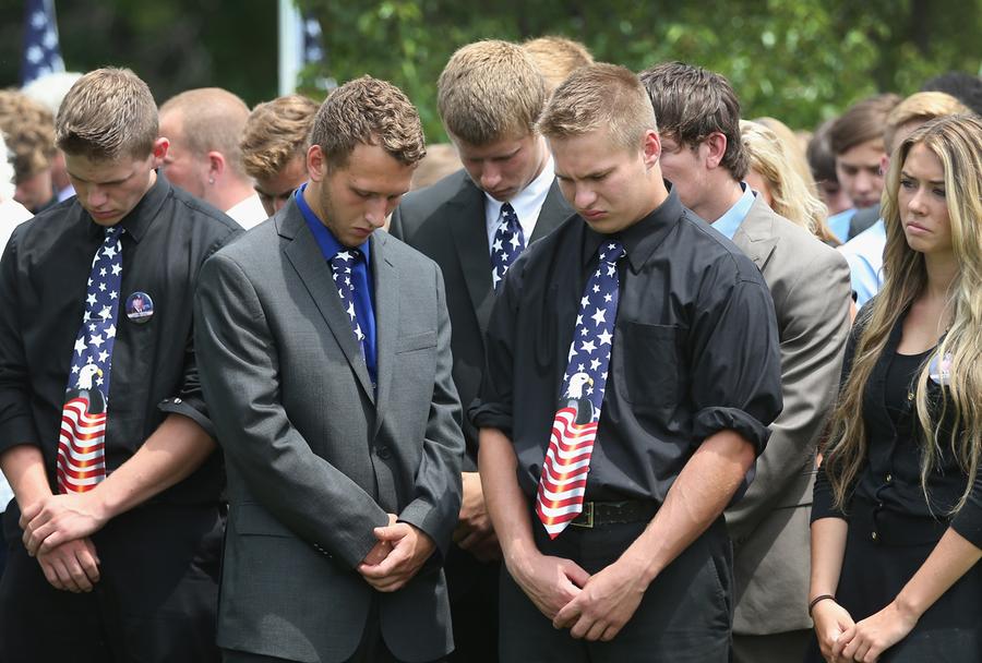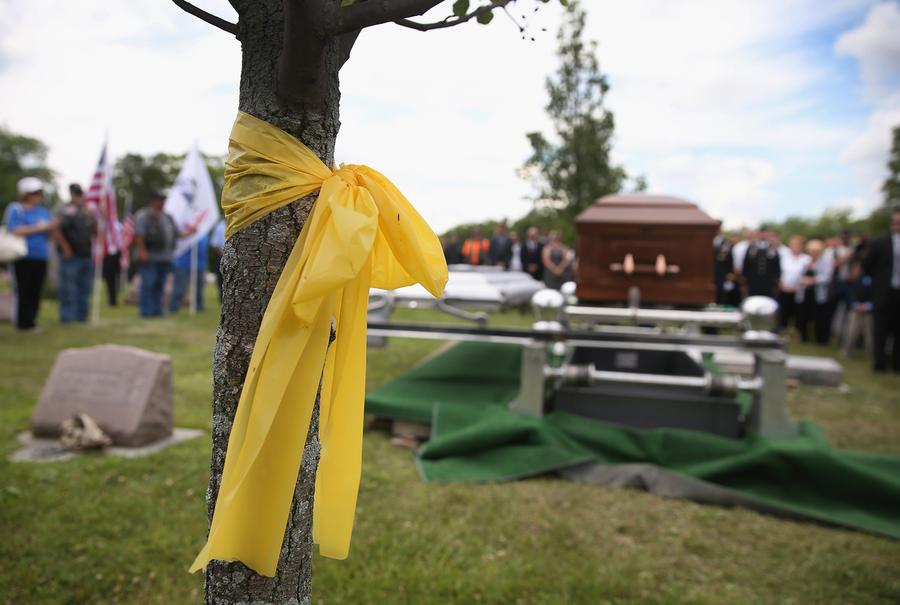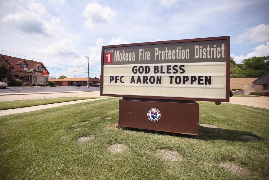 On June 9, 2014, during a security operation in southern Afghanistan, a unit of U.S. and Afghan soldiers was hit by a friendly fire airstrike, killing five Americans and one Afghan. One of the Americans was 19-year-old Private First Class Aaron Toppen, of Mokena, Illinois. A series of memorials and transfers then began, to return his body home to the U.S. for burial -- a sequence of events carried out some 2,200 times since the start of the war in Afghanistan. Once his remains arrived in Chicago, Getty Images photographer Scott Olson stayed with the family through the processions, visitations, services, and burial, documenting the final journey of one of the most recent soldiers to have died in Afghanistan. Pfc. Toppen, who had always wanted to join the Army, signed on last July, and had only arrived in Afghanistan this March. Today's entry is part of the ongoing series here on Afghanistan.
