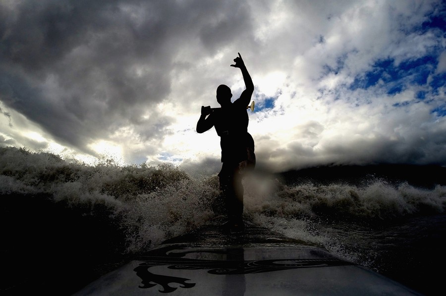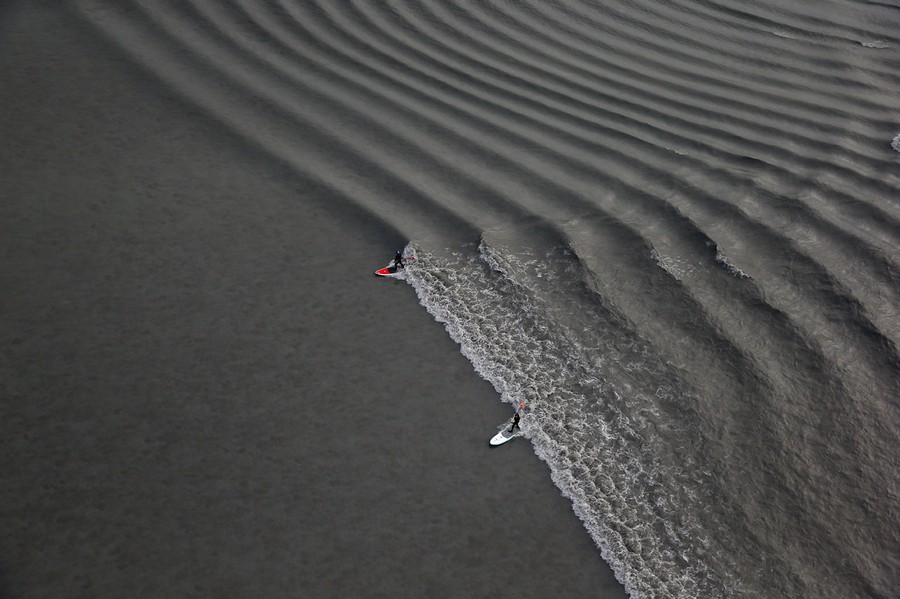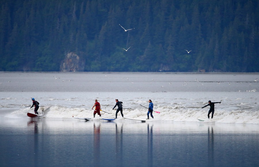 Many years ago, I worked as a tour guide in Alaska, falling deeply in love with the state. One of my favorite drives was along Turnagain Arm, a long and shallow branch of Cook Inlet, a beautiful landscape that is home to a fascinating natural phenomenon. Bore tides occur when an incoming high tide collides with the outgoing tide in a narrow channel, generating a turbulent wave front. Getty Images photographer Streeter Lecka was recently lucky enough to spend six days on Turnagain Arm, photographing the brave souls who venture out onto the mudflats to ride these waves. Waves can reach as high as 10 feet tall, crashing over calmer waters, moving upstream at 10-15 mph. Gathered here are some of Lecka's images of the surfers riding the bore tides of Turnagain Arm.