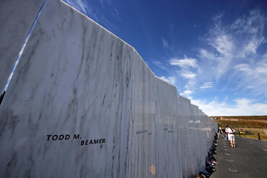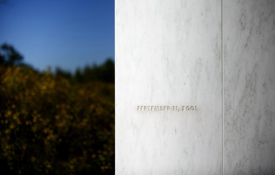 Read moreThe Wall of Names containing the names of the 40 crew and passengers on Flight 93 at the Flight 93 National Memorial on September 11, 2013. The wall follows the plane's flight path to a boulder, rear, that marks the impact site. #