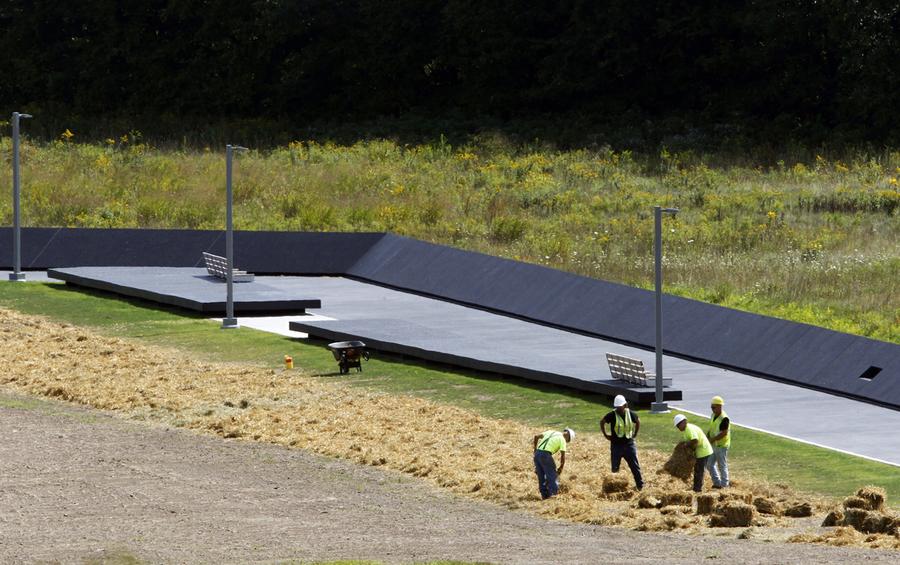 Thirteen years ago, during the terrorist attacks of September 11, 2001, a passenger revolt against the hijackers of United Airlines Flight 93 resulted in the aircraft crashing into a field just outside Shanksville, Pennsylvania, killing all 44 people aboard (including the four hijackers). Authorities believe this fourth hijacked aircraft was also to be used as a missile, targeting either the U.S. Capitol Building or the White House. In the years since, a national memorial at the Pennsylvania crash site has been under planning and construction, now due to be completed sometime in late 2015. Phase one was completed in 2011, including the "wall of names," 40 granite slabs standing eight feet tall, inscribed with the names of the passengers and crew of Flight 93. On this 13th anniversary of that tragic day, here are a few recent images of the Flight 93 National Memorial.