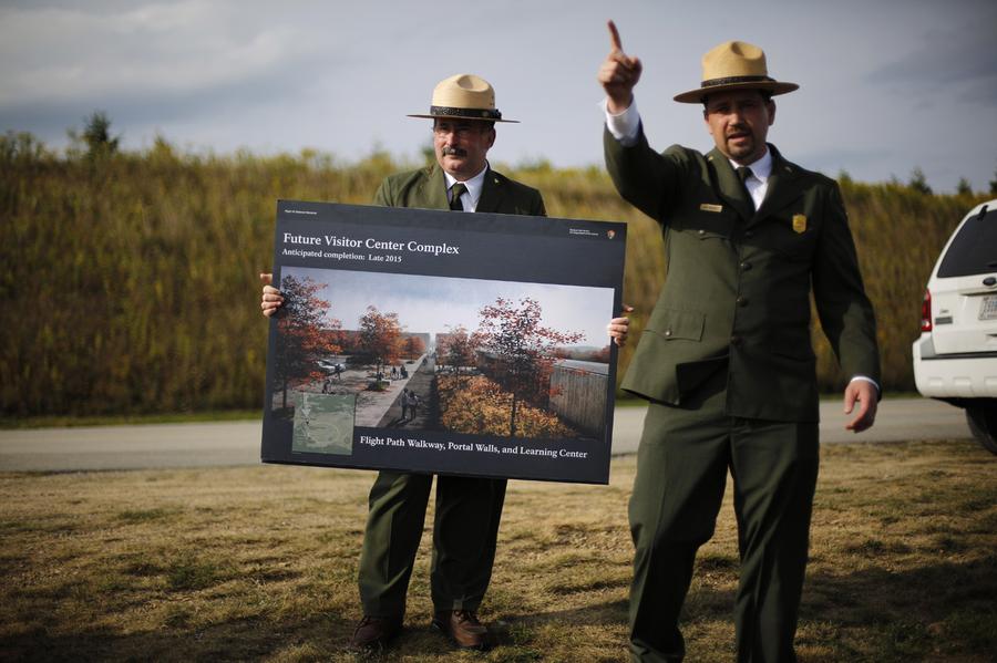 Read moreKevin E. Newlin, left, and Jeff Reinbold of the National Park Service lead a media tour of the Flight 93 Visitors Center Complex construction site on September 10, 2014. #